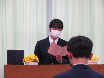 これから、社会人としてスタートを切る不安や緊張感、そして大きな期待を胸に秘め、後輩達には卒業までに頑張ってほしいことをメッセージとして伝えてくれました。在舎生は、真剣な眼差しで先輩を見ていて、心にひびいたようです。