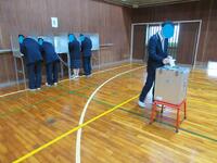 演説会後には投票が行われ、生徒たちは実物に近い投票所入場券を使って受付で投票用紙をもらい、実際の選挙で使われている記載台、投票箱を用いて投票を行うことで、一連の投票の流れを学ぶ貴重な機会となりました。