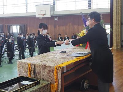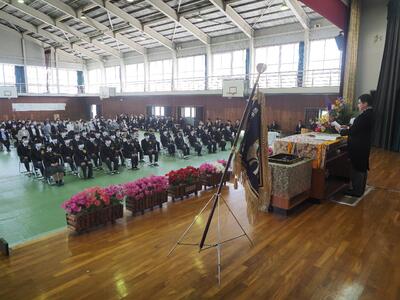 今年度も、感染症対策のため来賓や在校生の出席は無く、内容も短縮して、