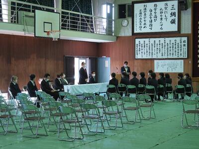 矢部高校では、卒業式の前日(2月28日)に同窓会入会式を実施しています。