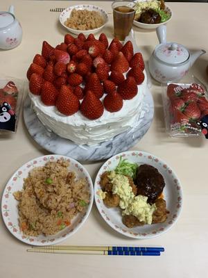 8月生まれの寮生の誕生日おめでとう晩ごはんです