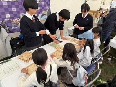 本校から林業科学科の生徒が参加し、通潤パズルや木製クリップボード・小型のイスの販売、そして通潤パズルの体験会を行いました