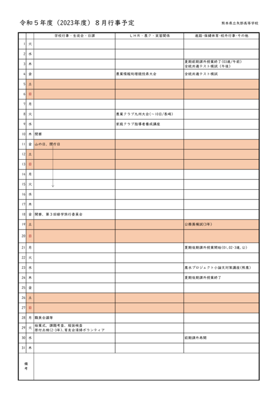 令和5年度(2023年度)8月行事予定 投稿日時 : 2023/07/19 事務 カテゴリ:行事予定 8月の行事予定になります。 諸事情により学校行事・日程等が変更される場合があることを申し添えます。 R5 08月行事予定.pdf 0 {{options.likeCount}} {{options.likeCount}} {{options.unlikeCount}} {{options.unlikeCount}}
