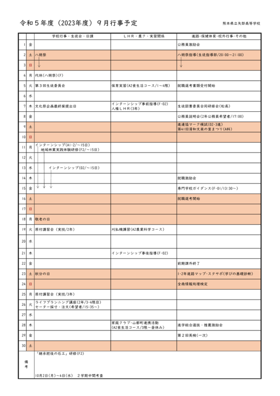 令和5年度(2023年度)9月行事予定 投稿日時 : 2023/08/28 事務 9月の行事予定になります。 諸事情により学校行事・日程等が変更される場合があることを申し添えます。 R5 09月行事予定.pdf 0 {{options.likeCount}} {{options.likeCount}} {{options.unlikeCount}} {{options.unlikeCount}}