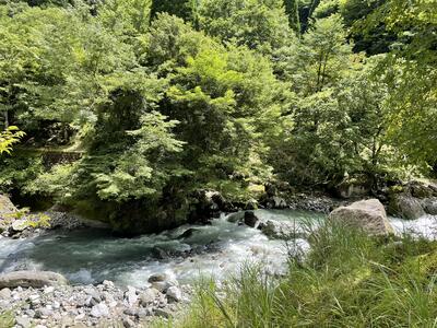 山の木々や川のせせらぎがとても綺麗な場所でした。群生地まで少し山を登りました