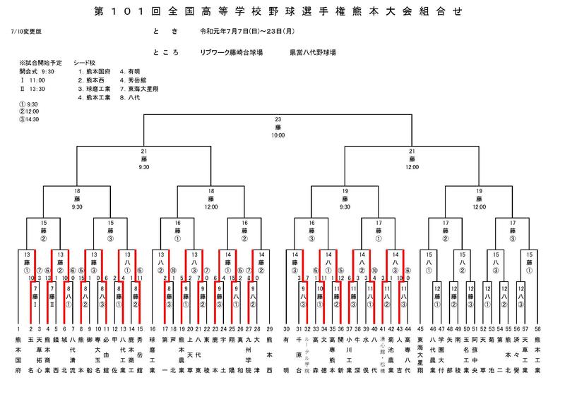 第101回全国高等学校野球選手権熊本大会の組み合わせ抽選会が本日行われ、