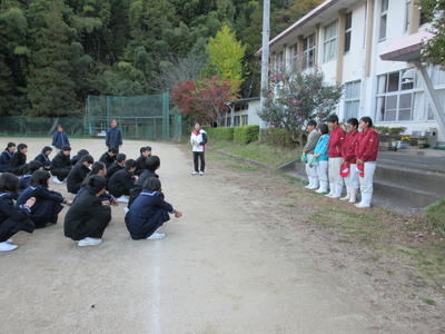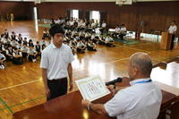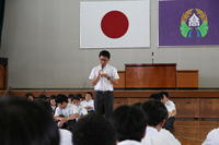 会場の古町小学校での出発式では、本校の取り組みについて、紹介することができました。
