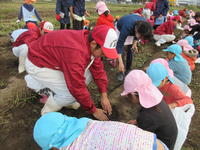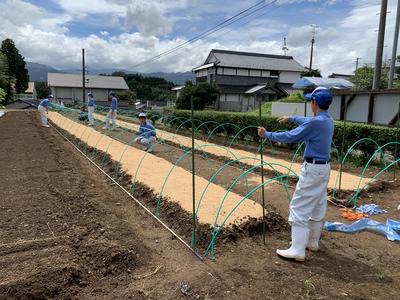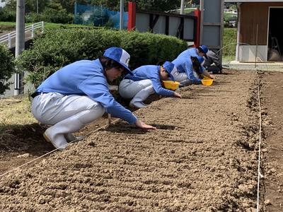 晴天の中、食農科学科1年生で植えました。思うように足を動かすことができず苦戦する生徒もいましたが、笑顔溢れる楽しい実習となりました。これから食農科学科1年生を中心に栽培管理を頑張ります。