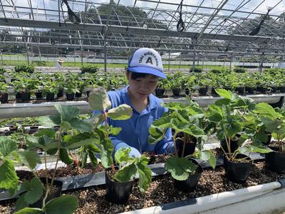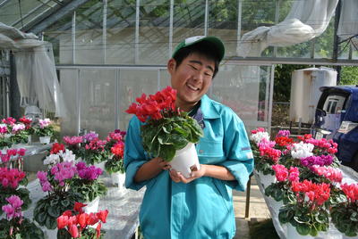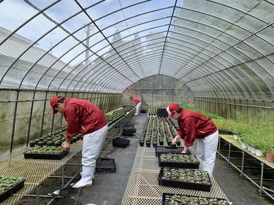 また、農場ではスイカの栽培や様々な種類の草花も栽培しています。温室は草花で溢れてとてもきれいです。毎日のかん水や栽培管理を頑張っています。
