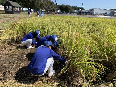 本校ではアジア・アフリカ支援米として、食農科学科1年生で取り組んでいます。今年度も1学年で6月5日に田植えを行いました。その後は栽培管理を行い、10月9日に稲刈りを行いました。今年度、本校では480kgを支援米として送ります。