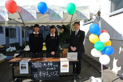 1月11日(土)熊本市中央区の古町小学校にて、アジア・アフリカ支援米の出発式が行われました。食農科学科1年から3名の生徒が参加しました。