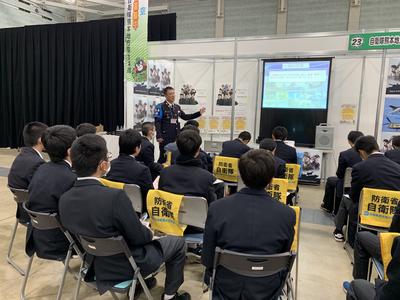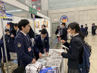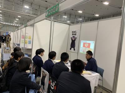 将来に向けた進路選択や職業理解の場を提供し、キャリア形成の支援を図ることを目的に、「くまもとお仕事探検フェア」に1・2学年生徒全員で参加しました。12月16日にグランメッセで行われたフェアには、県内企業や団体、専門学校や大学など様々なブースが並んでおり、仕事の魅力ややりがい等について話を聞くことができました。