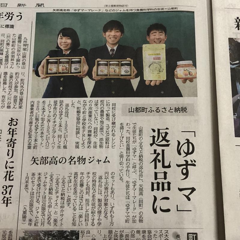 本校では生徒が製造した実習製品(ゆずマーマレード、ブルーベリージャム、イチゴジャム)を、山都町ふるさと納税返礼品に利用していただいています。