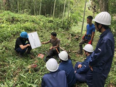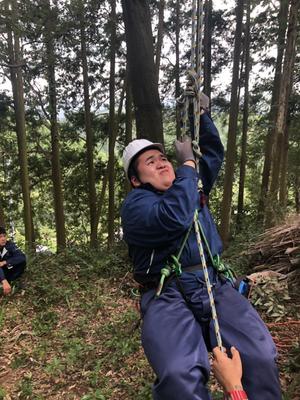 午後は、御船町の国武林業で特殊伐採に関する研修をしました。