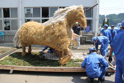 大造り物は9月末までやまと文化の森で展示し、10月からは矢部高校体育館前に常設展示します。