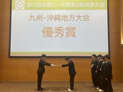 福岡市で開催された、第11回全国ユース環境活動発表大会に林業科学科の森林保全班が参加し、『どんぐりから始まる森づくり』の活動を発表しました