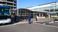 また、部活動の生徒はユニフォーム等で中央ホール付近で出迎え、