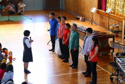 緑科学科の生徒2人とベリーちゃんが、蘇陽中学校を訪れ、昼食後のランチルームで全校生徒を前に表彰式を行いました。表彰をされたのは、木材を利用した「蘇陽のお土産コンテスト」に応募した5人の生徒さん達です。(最優秀賞1,優秀賞4)