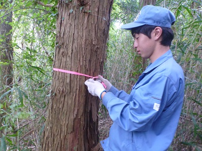 実際に演習林場の林道を歩き境界線の確認をしました。