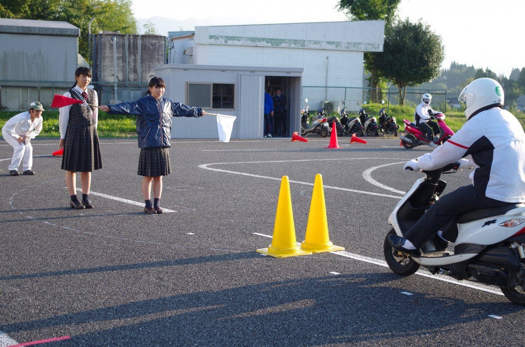内容・「あご紐の確認」「正しい乗車姿勢」「発進・停止」