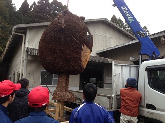 最優秀賞は山都町のゆるキャラである「ベリーちゃん」を使った作品でした。その作品をヒントに、緑科学科で「ベリーちゃん積み木」を開発し、そのお披露目も行いました。