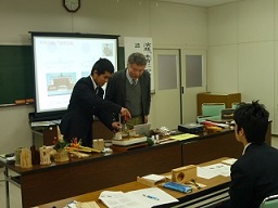平成26年度から製作に取りかかり、これまで町内外の小学校や盲学校に納品しています。この日は蘇陽南小学校4年生の授業で、緑科学科3年生の生徒が模型の説明を行いました。