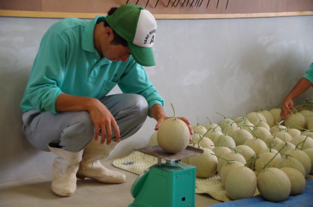重量を計って、価格設定をします。 糖度は13~15度でした。