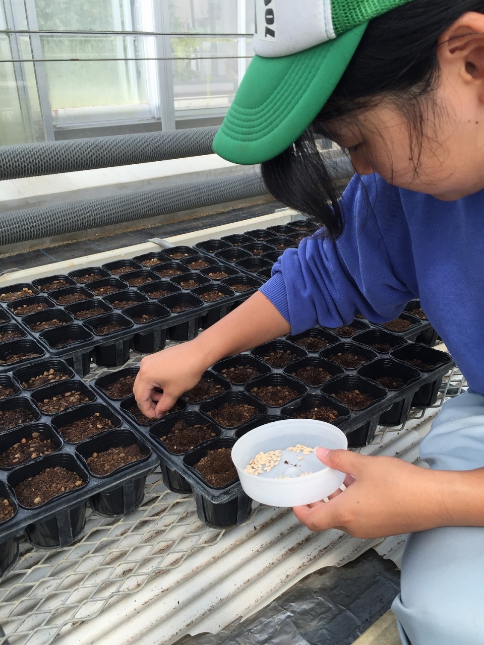 収穫の翌日、26日(火)には秋作メロンの播種を行いました。