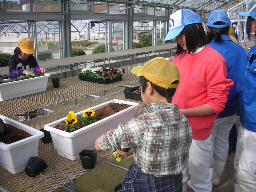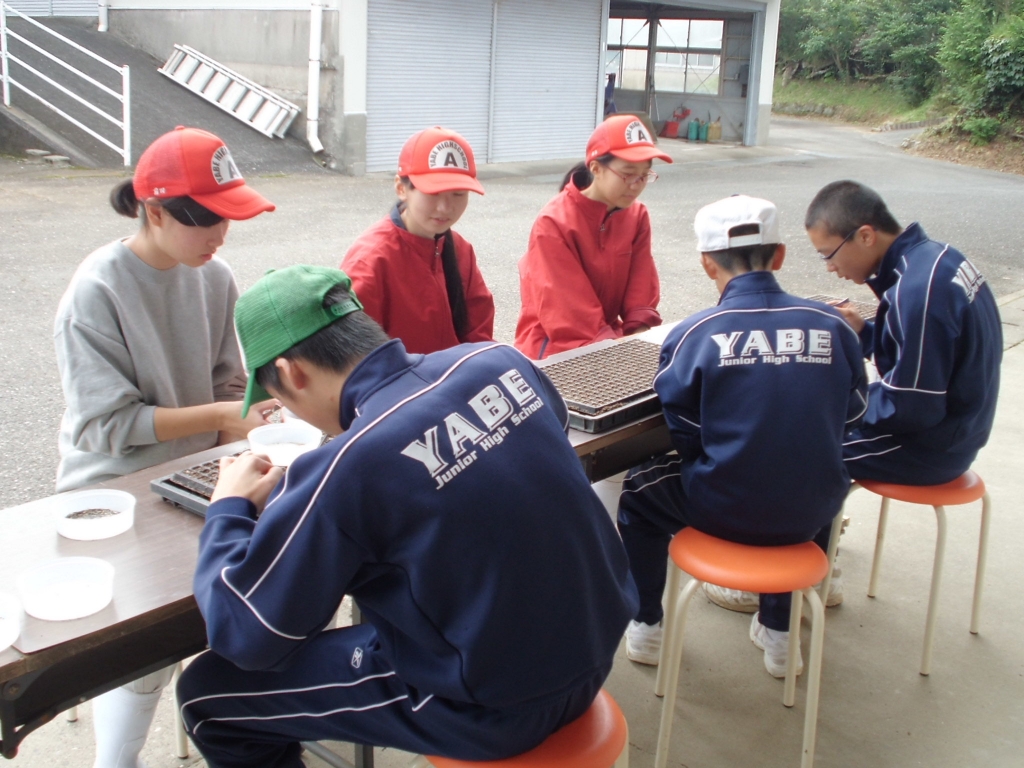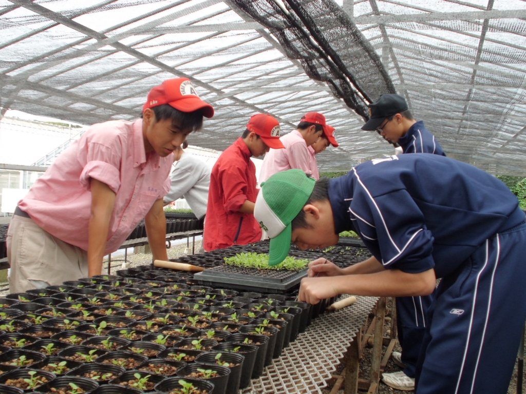 9月10日(水)に中学生3名が来校してくれ、食農科学科で職場体験(農業体験学習)を実施しました。1・2限目は草花部門で、様々な種子の播種とビオラの鉢上げを体験しました。この日は草花専攻生7名が中学生に優しく指導しました。3・4限目は野菜部門で、トマトの管理とピーマンの収穫、5・6限目は食品製造部門でイチゴジャム作りを体験しました。中学生に限らず、本校生徒・職員にとっても貴重な学習の場となりました。