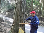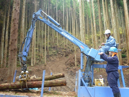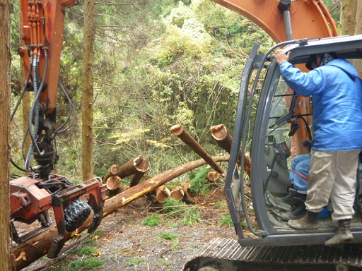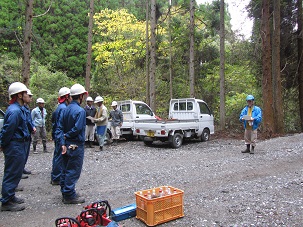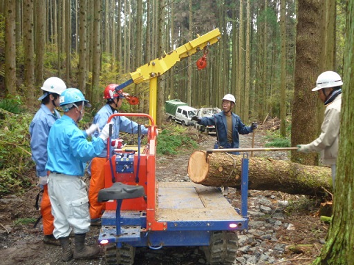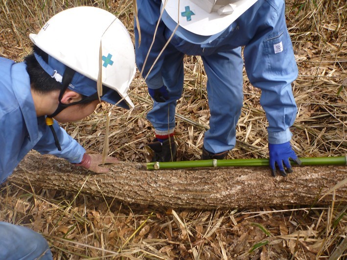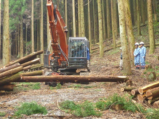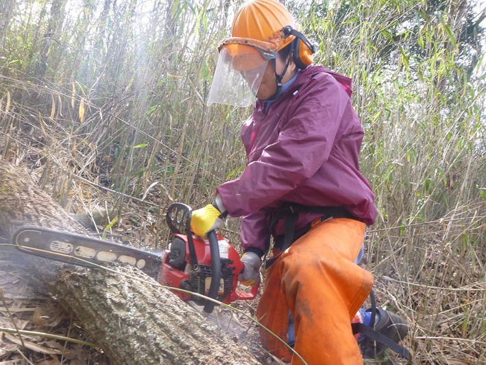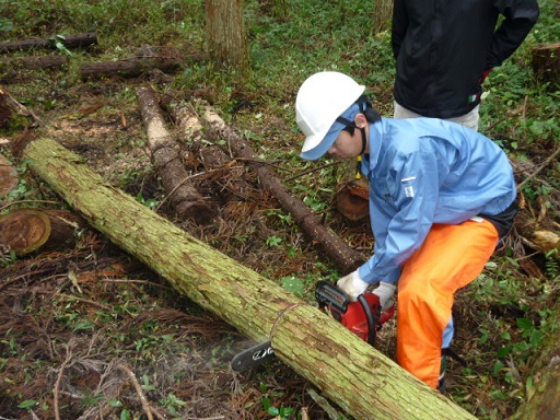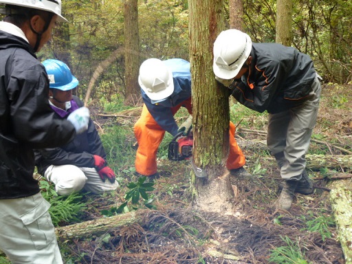 実際に山へ行きチェーンソーを使っての実習などをしました(^∀^)