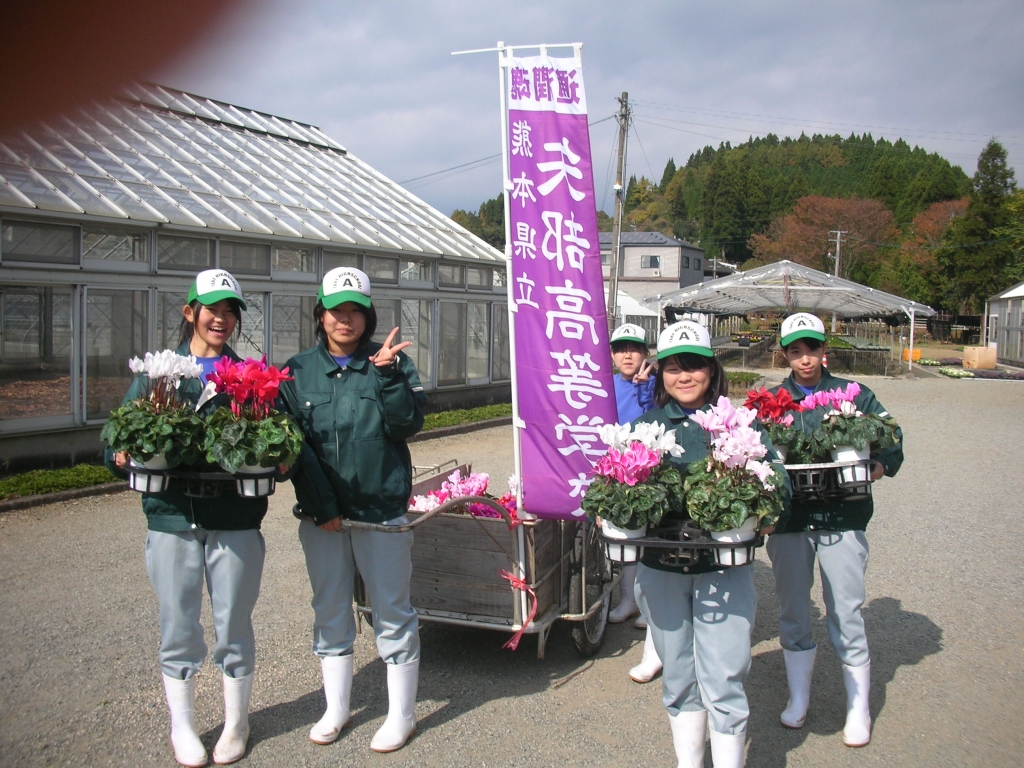 今年度も山都町交通安全協会の依頼を受け、食農科学科ではキク(ポットマム)を栽培しました。4月中旬に播種し、これまで肥培管理を行いながら大切に育ててきました。これらは山都町交通安全協会の方々から、町内のドライバーの方に無料で配布されます。生徒たちが育てたキク(ポットマム)を介し、地域の方々の交通安全意識が高まれば幸いです。