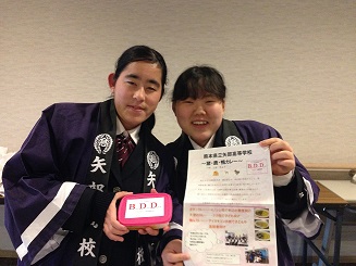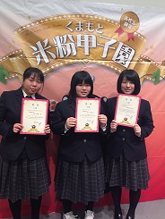 表彰式では、審査員長のくまモンから賞状が贈られました。また、副賞として熊本製粉様からロールケーキも頂きました。とても良い経験になりました。