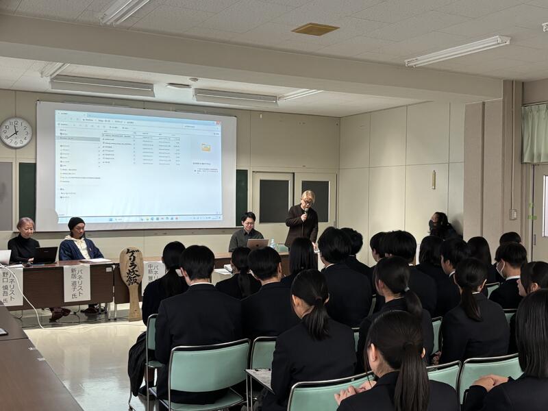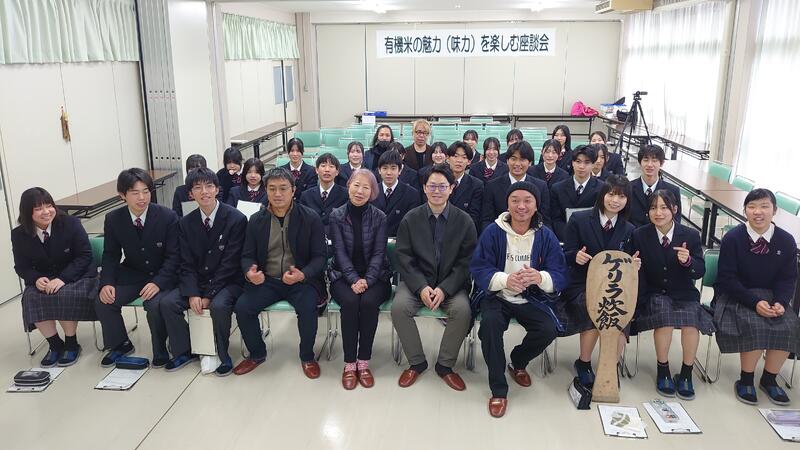 【食農科学科】環境に優しい米作り食味コンテスト 投稿日時 : 13:53 農業科学コース カテゴリ:行事・イベント報告 1月21日に矢部高校にて「環境に優しい米作り食味コンテスト」が開催され、食農科学科1・2年生が出席しました 講演、パネルディスカッション、食味会が行われ、お米のことや米作り、食べること、地域のことなどについて考える時間となりました 食味会では、4種類の玄米(有機米)を食べ比べ味の比較を行いました。玄米だけでなく、しし汁もいただきました。 食味コンテストの前には、滋賀県から来られたONE SLASH(株)の中筋様から生徒向けに講話をしていただきました。お話を聞いて、元気をいただくことができました {{options.likeCount}} {{options.likeCount}}