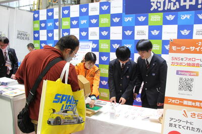 矢部高校は25日まで日本二輪車普及安全協会のブースのお手伝いをします。