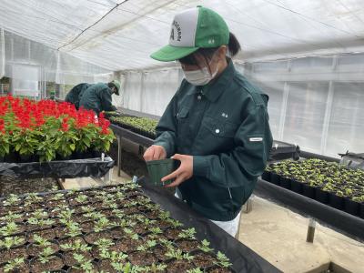 食農科学科では毎年この時期は、野菜苗や花苗の栽培管理を学んでいます。