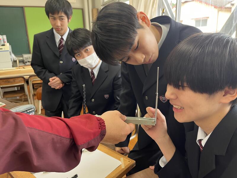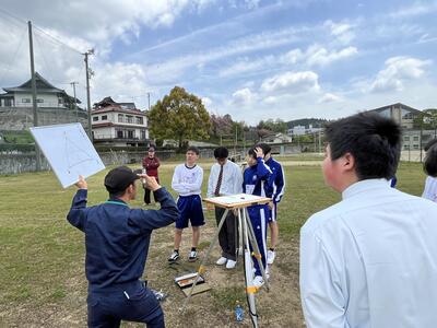 初めての測量実習となりましたが、新しく触れる測量器具に生徒たちは真剣そのもの!!あっという間に時間が過ぎました。『楽しかったです』との感想も聞くことができました✨