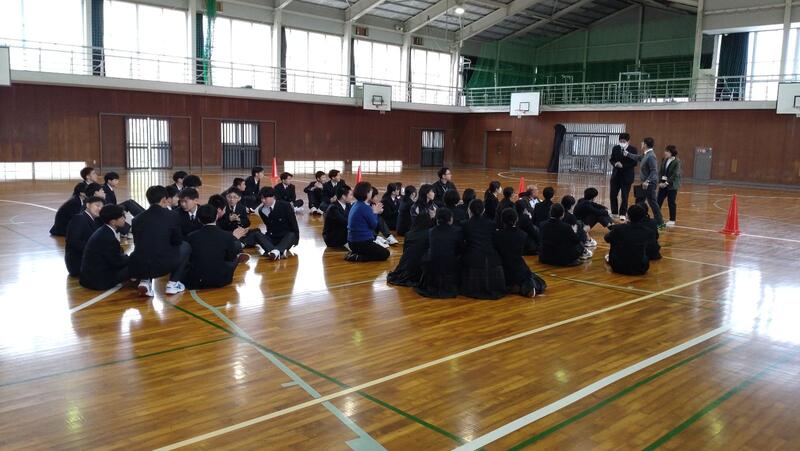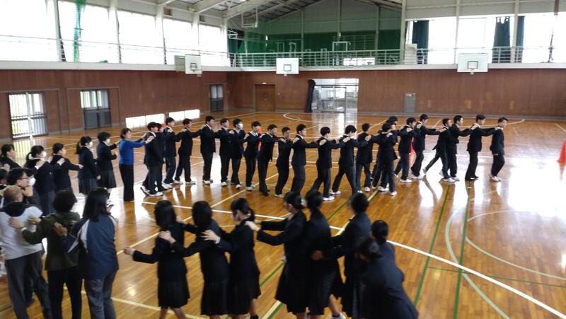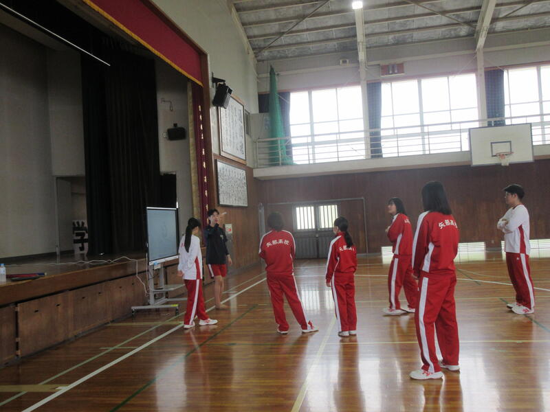 校長先生が手拍子を2回うつと2人組!3回うつと3人組!に分かれ、自己紹介をするゲームやじゃんけんに負けた人が勝った人の後ろに繋がるじゃんけん列車など、校長先生が大いに盛り上げ、クラスを越えて生徒間の仲が深まりましたじゃんけん列車では、学年で1番じゃんけんが強い生徒も誕生