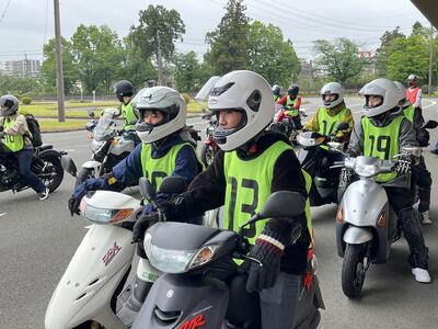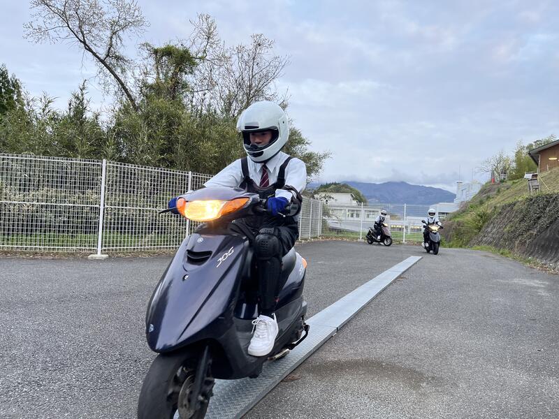 2年生のほとんどの生徒が4月から原付での通学を始めました。