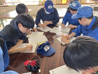 おかげ様で2年生も作業工程を早く覚えることができました最後には、みんなで振り返りをして実習を終えました