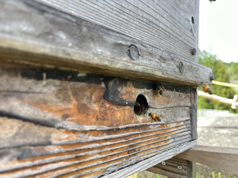 今年も「探索蜂」が新しい巣箱に飛来しました。その様子がこちらです。↓↓↓