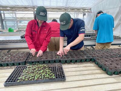 【食農科学科】草花 シクラメンの鉢上げと花苗管理