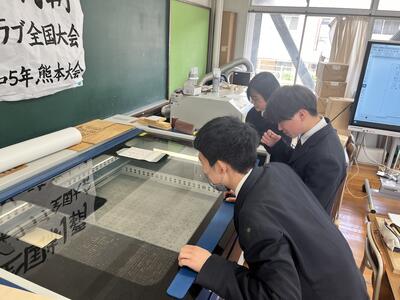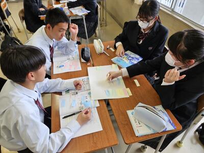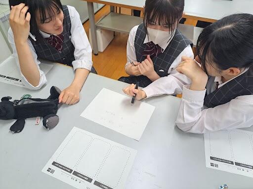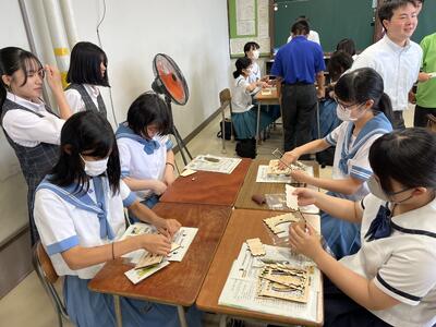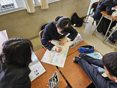 今日の授業では、3年生の生徒が認知症予防パズル「好き!通潤パズル」の製作を行いました。