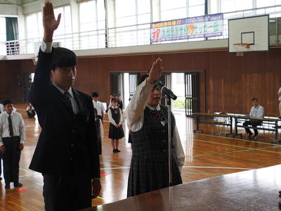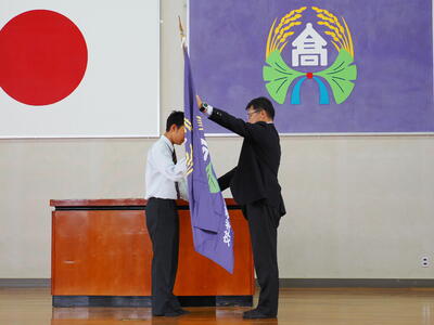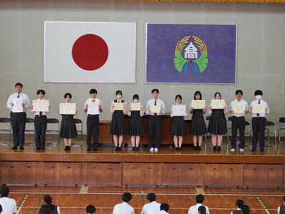 表彰式では1学期に部活動や学校農業クラブの各種競技、資格取得等において成果を残した生徒たちの表彰が行われました。