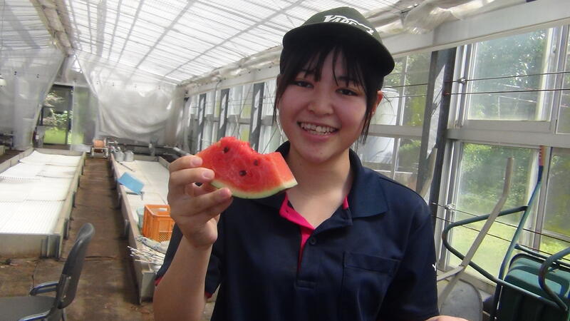 食農科学科2年生で栽培した小玉スイカを