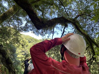 学校から車で数十分、林道を進んでいき現地に到着しました。