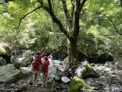 山の木々や川のせせらぎがとても綺麗な場所でした。群生地まで少し山を登りました