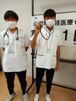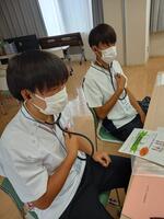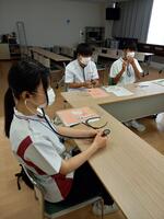 午前中は開会行事の後、脈のとり方や聴診器の使い方、血圧のはかり方など、基本的な医療行為を体験しました。