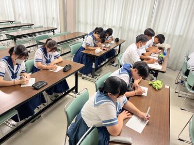 今年の1学期はコロナ感染症が再び猛威を振るい、1クラスが学級閉鎖となりましたがこの日は無事すべてのクラスが参加しました。