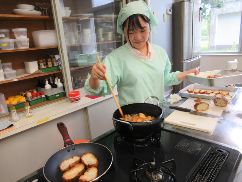 夏休み期間に、調理検定1級試験がありました。テーマは「15歳の妹への誕生日パーティー」です。緊張な面持ちですが、力を振り絞って頑張っていました!