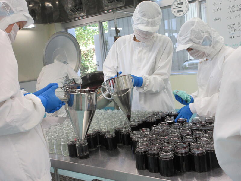 食農科学科3年生で、ブルーベリージャムの製造・瓶詰め・検品を行いました。